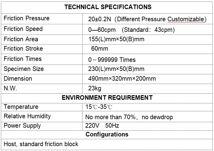 Rub Tester MCJ-05 adopt latest MCU control system, the user simply clamping sample to be tested, the instrument will automatically complete the whole test process. It can adjust CVT test speed and meet the requirements of different standards on the test speed. Friction tester is widely used in printing, packaging enterprises, general administration of quality supervision, inspection institutions and other units.