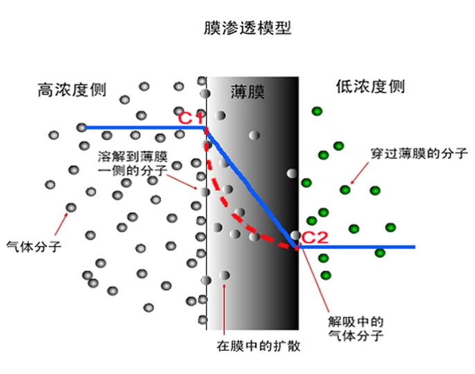 Form the micro perspective, penetration of gases can be divided into five steps, as demonstrated in above picture: