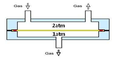 Due to the concentration gradient, gases at the high concentration side start to diffuse to the other side, and concentration equilibrium will be reached after some time.