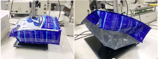 A total of 3 bags of samples were tested in this experiment. The burst pressures of each sample were 40.5 KPa, 41.8 KPa, and 40.7 KPa respectively, and they all broke at the side sealing edge of the sample.